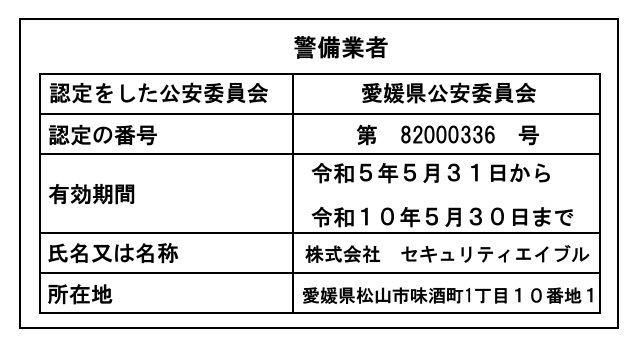 | ■認定番号 | 愛媛県公安委員会 第82000336号 |